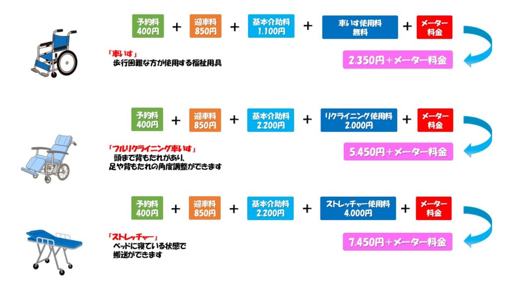 民間救急を介護タクシーと同じ料金でご利用いただけます。